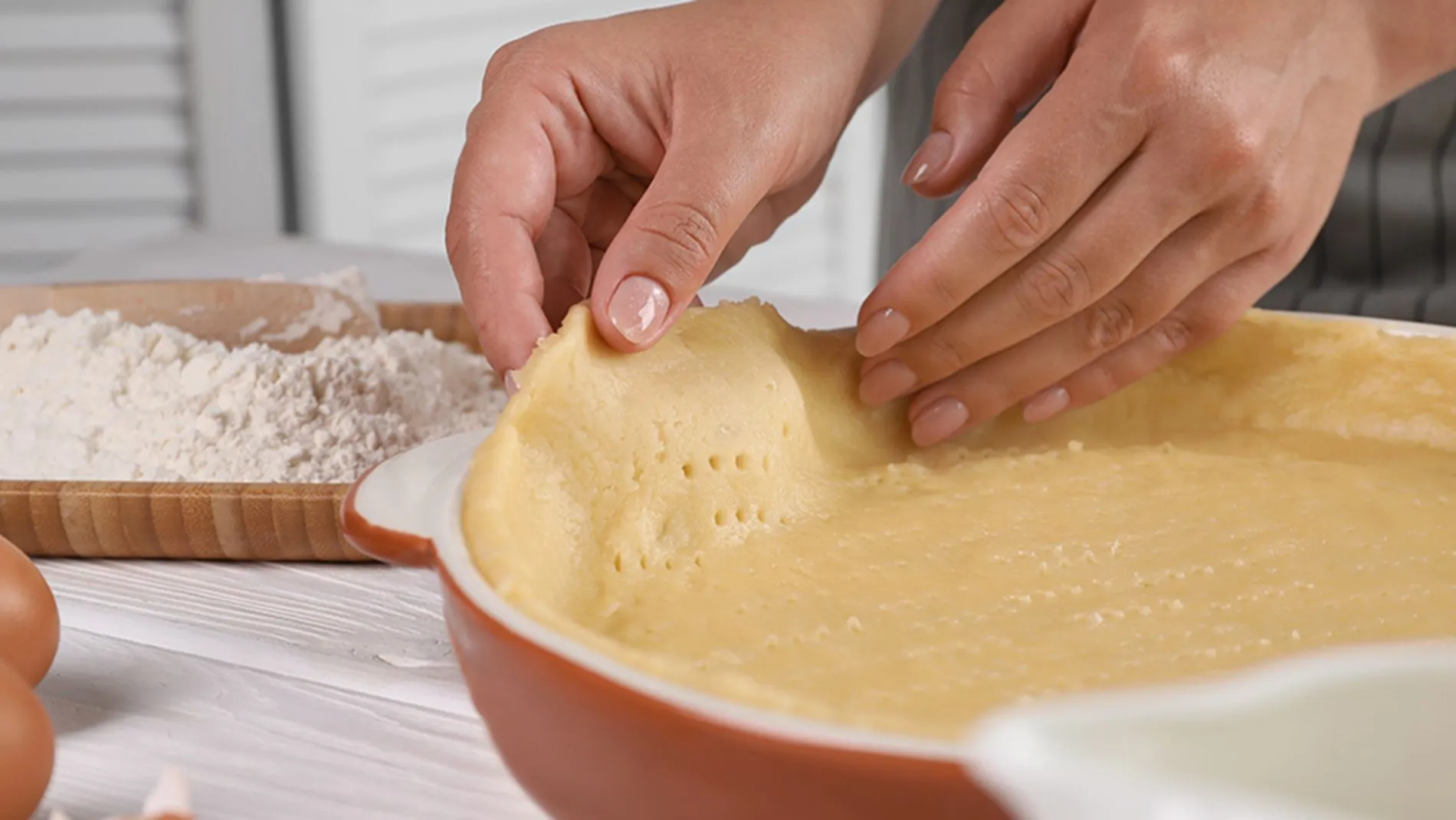 1. Z múky, masla, vajec, soli a vody vypracujeme hladké cesto, vložíme ho do chladničky a necháme asi 30 minút odpočívať.